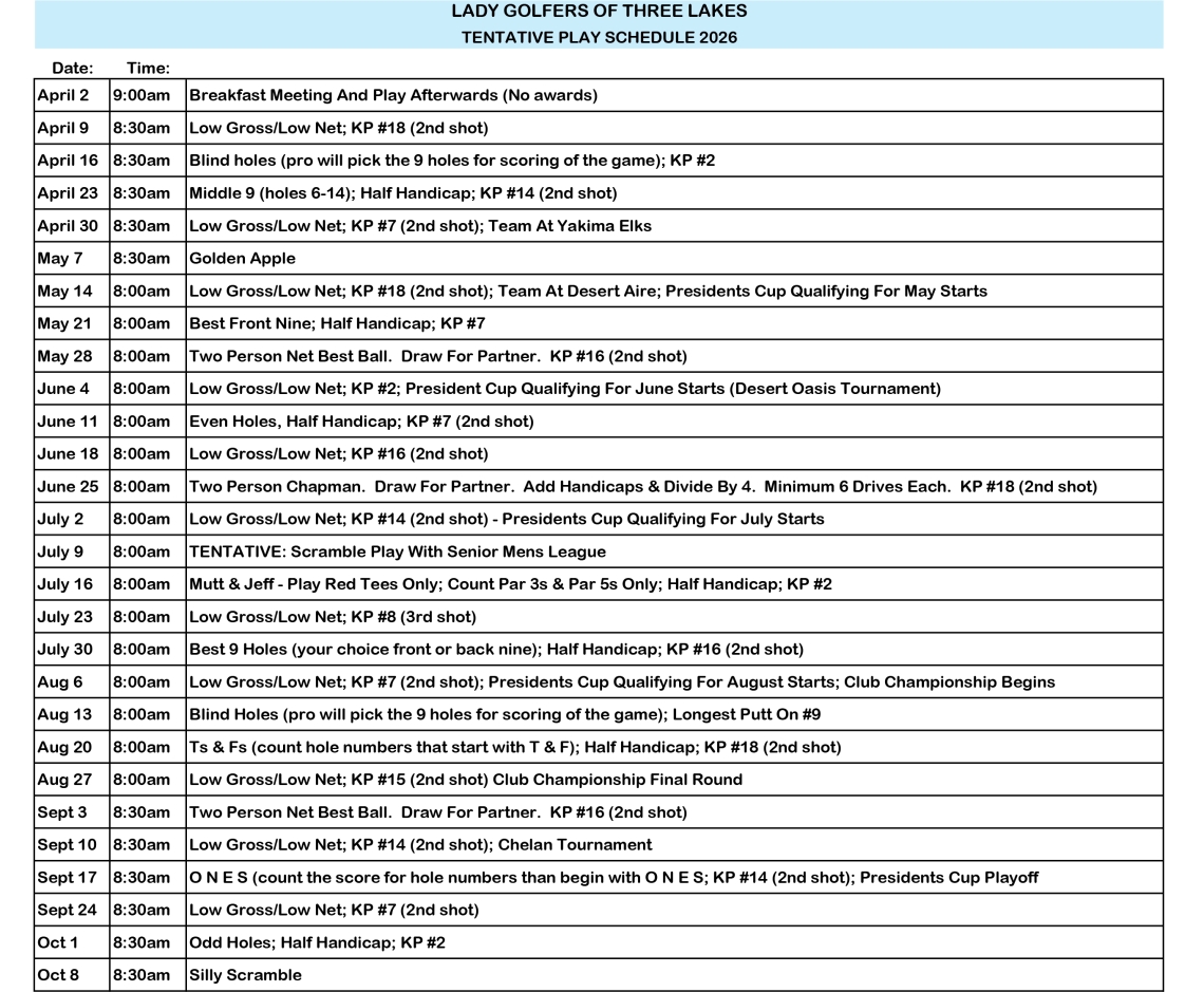 2026 Tentative Schedule